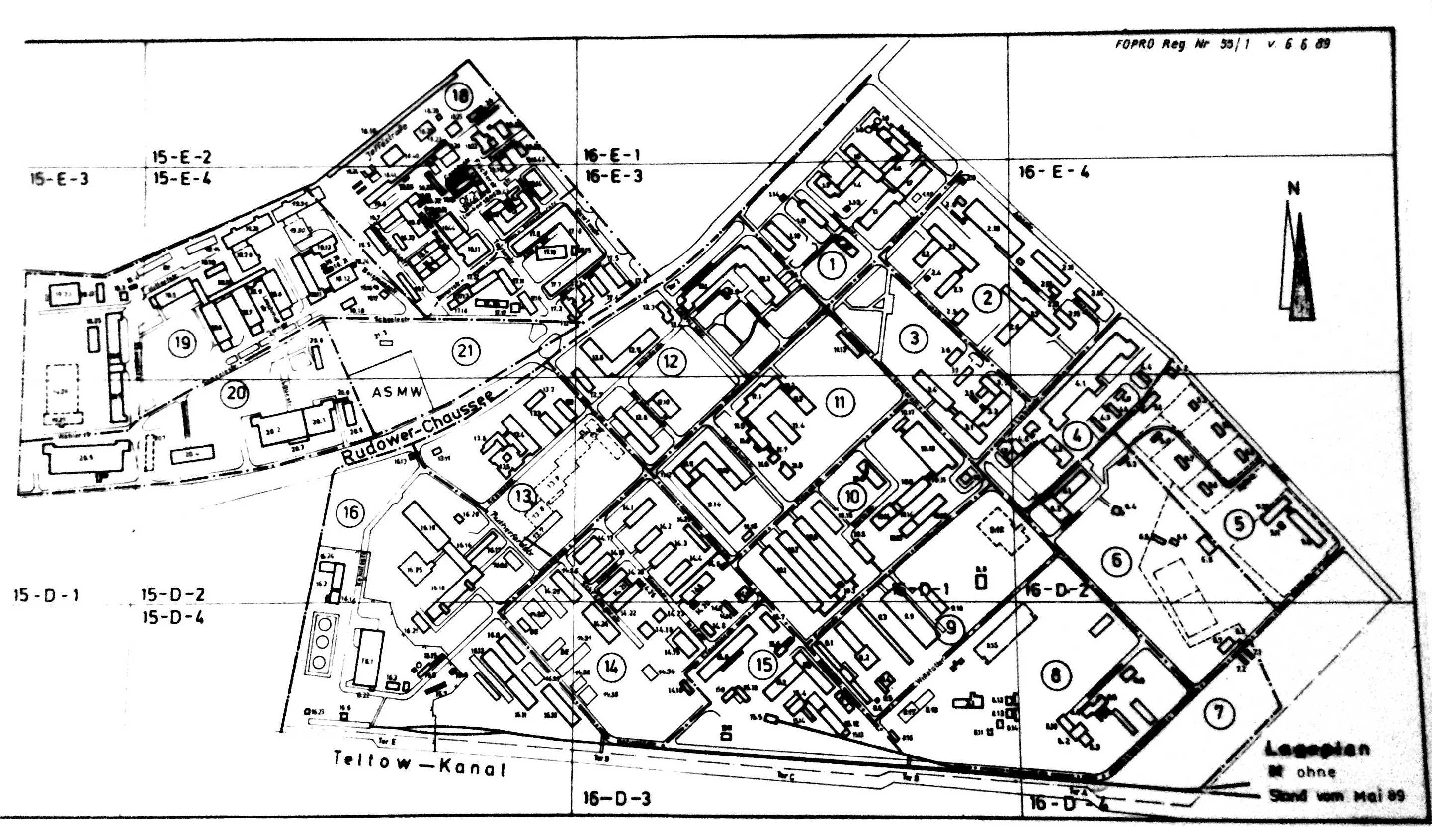 Bild 1b: Lageplan vom Gelände der Akademie der Wissenschaften in Adlershof im Jahre 1989. © Archivbild Dr. Gerhard Raetz.